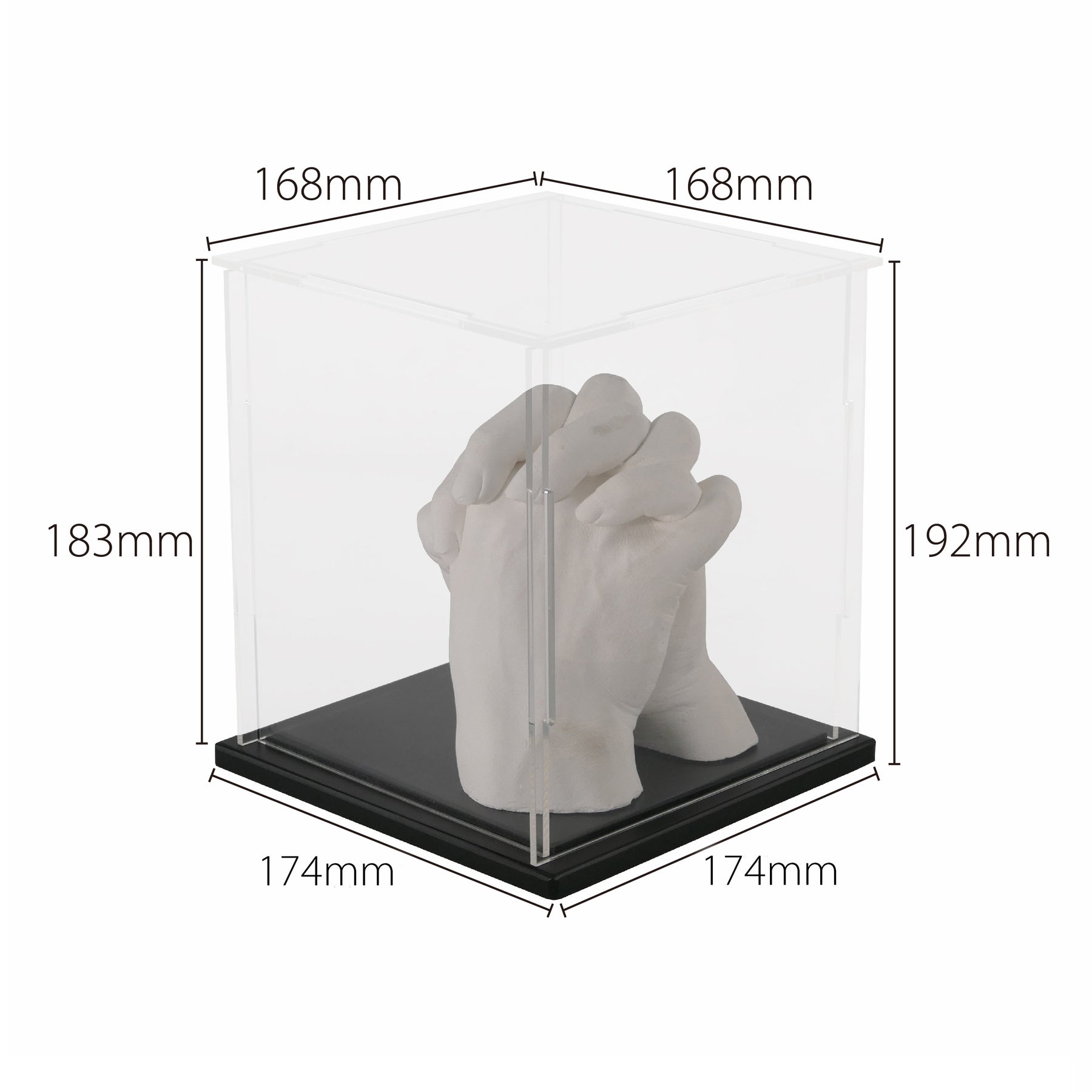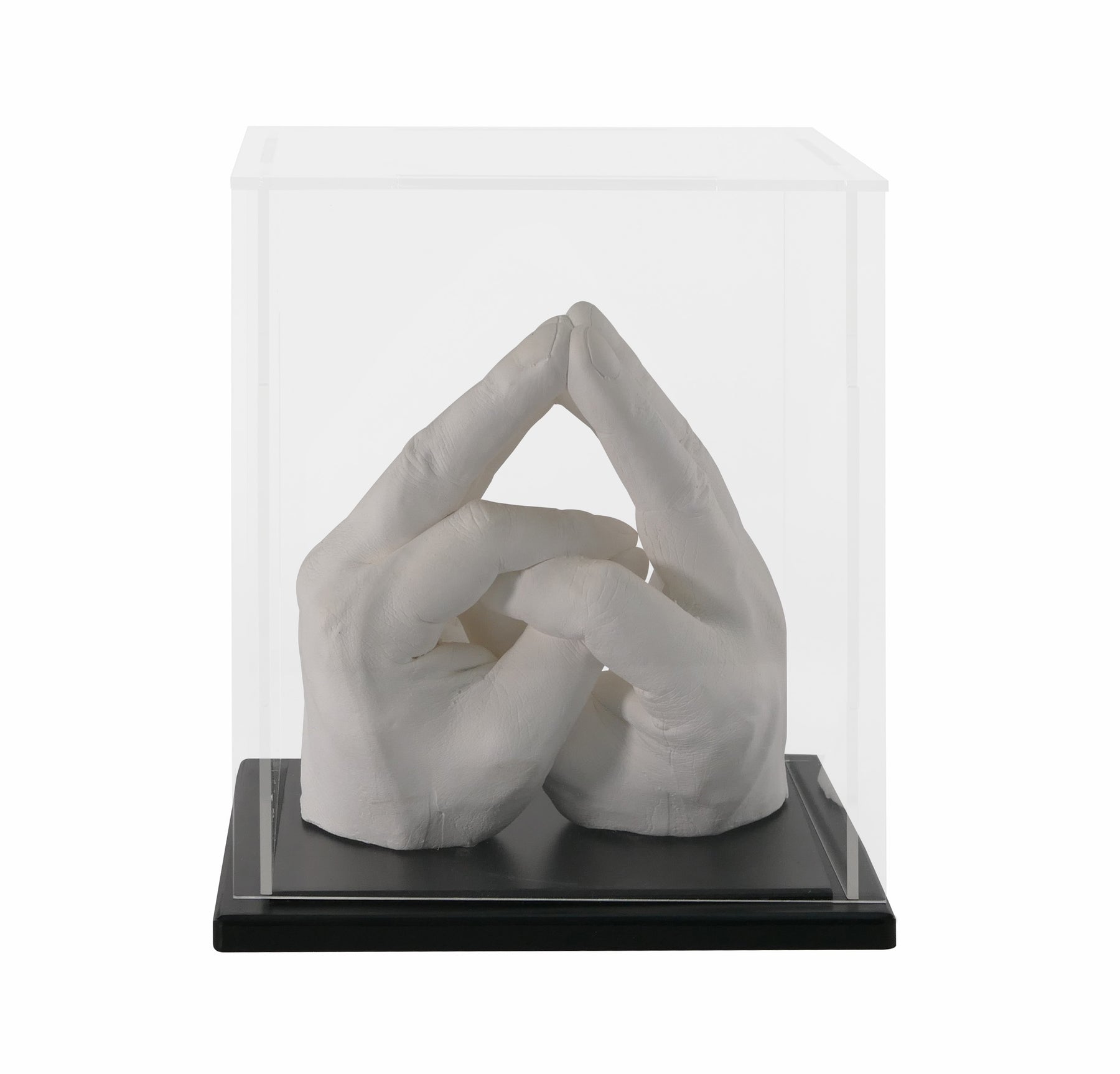 This elegant display case features crystal-clear acrylic walls and a sturdy, minimalist base to beautifully frame your family's intertwined hands. Whether it’s couples, parents, children or grandparents, this case offers the perfect way to preserve the memory and keep your sculpture safe from dust, damage, and everyday wear.